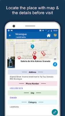 Aplikace Nicaragua Country Guide vás nejen provede, ale i inspiruje. Zjistěte, proč, kdy a jak navštívit různé lokality v Nikaragui, s přesnými souřadnicemi na podrobných mapách. Prozkoumejte zemi třemi intuitivními způsoby: dle kategorií, měst nebo skrze vaše oblíbená místa uložená v sekci EduBank. Získejte detailní trasy k vybraným cílům a díky integrovanému Street View si prohlédněte okolí ještě předtím, než se tam vydáte. Navíc můžete sdílet své dojmy a hodnocení, což pomůže rozšířit komunitní znalosti pro ostatní objevitele.
