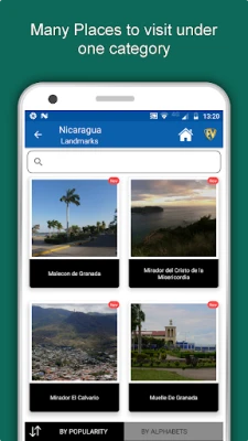 Nicaragua Country Guide je rozčleněna do mnoha promyšlených kategorií, aby vyhovovala všem zájmům – od milovníků umění a historie po nadšence divoké přírody, od duchovních poutníků po gurmány. Prozkoumejte kulinářské zážitky, dopravní uzly, kulturní události, flóru a faunu či sportovní aktivity. Nejenže vás aplikace informuje o leteckých, silničních a vodních cestách pro bezstarostné cestování, ale také nabízí základní fráze ve španělštině a živé novinky. S funkcí EduBank si snadno uložíte veškeré zajímavosti pro budoucí reference. Nicaragua Country Guide je vše, co potřebujete pro skutečnou cestu do srdce Nikaraguy, připravena vás vést na každém kroku.