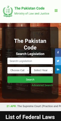 Tato aplikace, iniciativa Ministerstva spravedlnosti, usnadňuje přístup ke spravedlnosti v Pákistánu. Zpřístupňuje federální zákony široké veřejnosti, soudcům, prokuratuře, právníkům, studentům práv a výzkumníkům, kdekoli a kdykoli pro snadnou referenci.