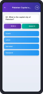 Pakistan Quiz Offline převádí tradiční studium do vzrušujícího herního zážitku. Postupujte napříč rozličnými úrovněmi obtížnosti, od základních informací až po expertní znalosti, a čelte tisícům otázek ve formátu MCQ. Pro okamžitou pomoc a lepší pochopení jsou připraveny inteligentní záchranné lana: volba '50:50' elegantně eliminuje dvě nesprávné odpovědi, zatímco funkce 'Ukázat odpověď' vám ihned odhalí správné řešení, což zajišťuje rychlé a efektivní učení.